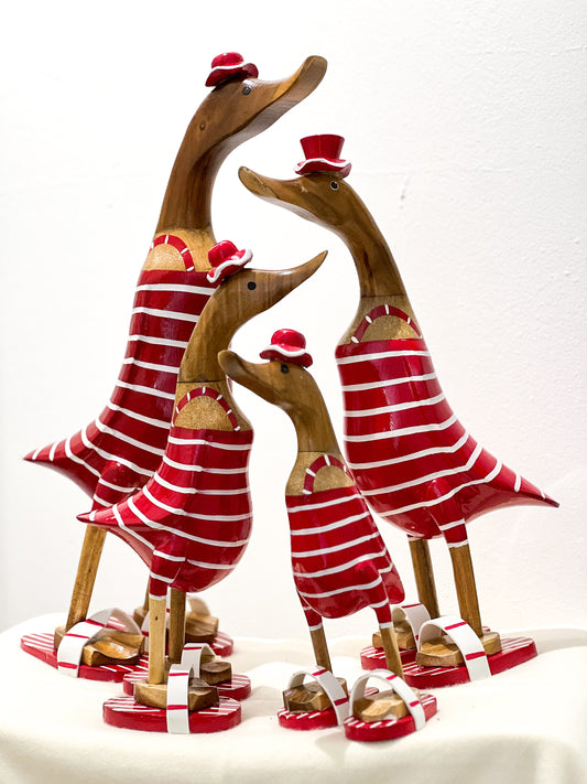 Bade Enten Familie (Rot-Weiß Gestreift in Flip-Flops)