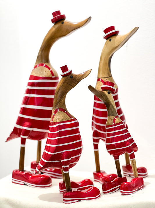 Bade Enten Familie (Rot-Weiß Gestreift in Boots)