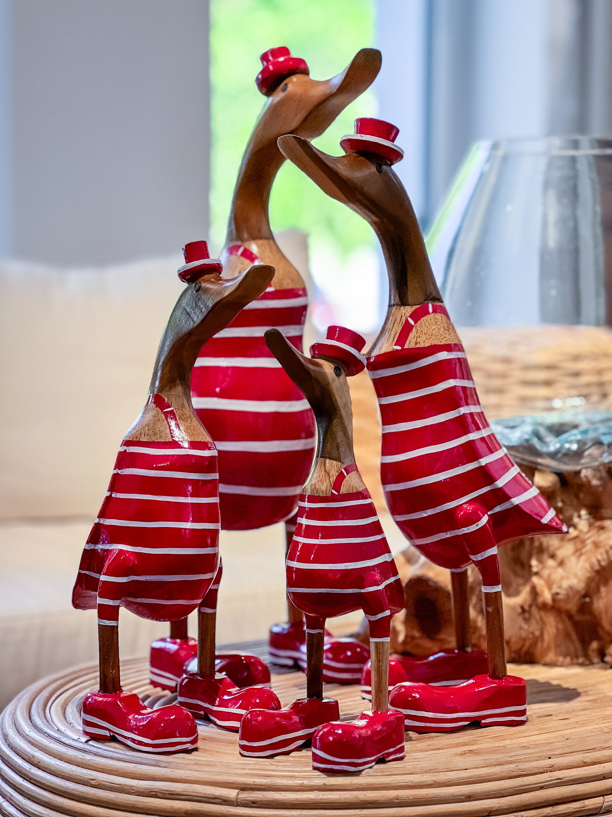 Bade Enten Familie (Rot-Weiß Gestreift in Boots)