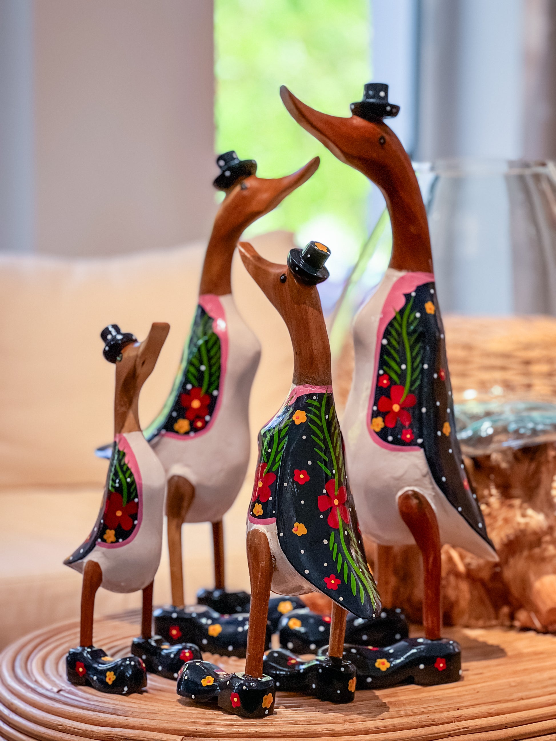 🦎Bringen Sie einen Hauch von Eleganz in Ihr Zuhause mit dieser schönen Holzentenfamilie aus Indonesien.