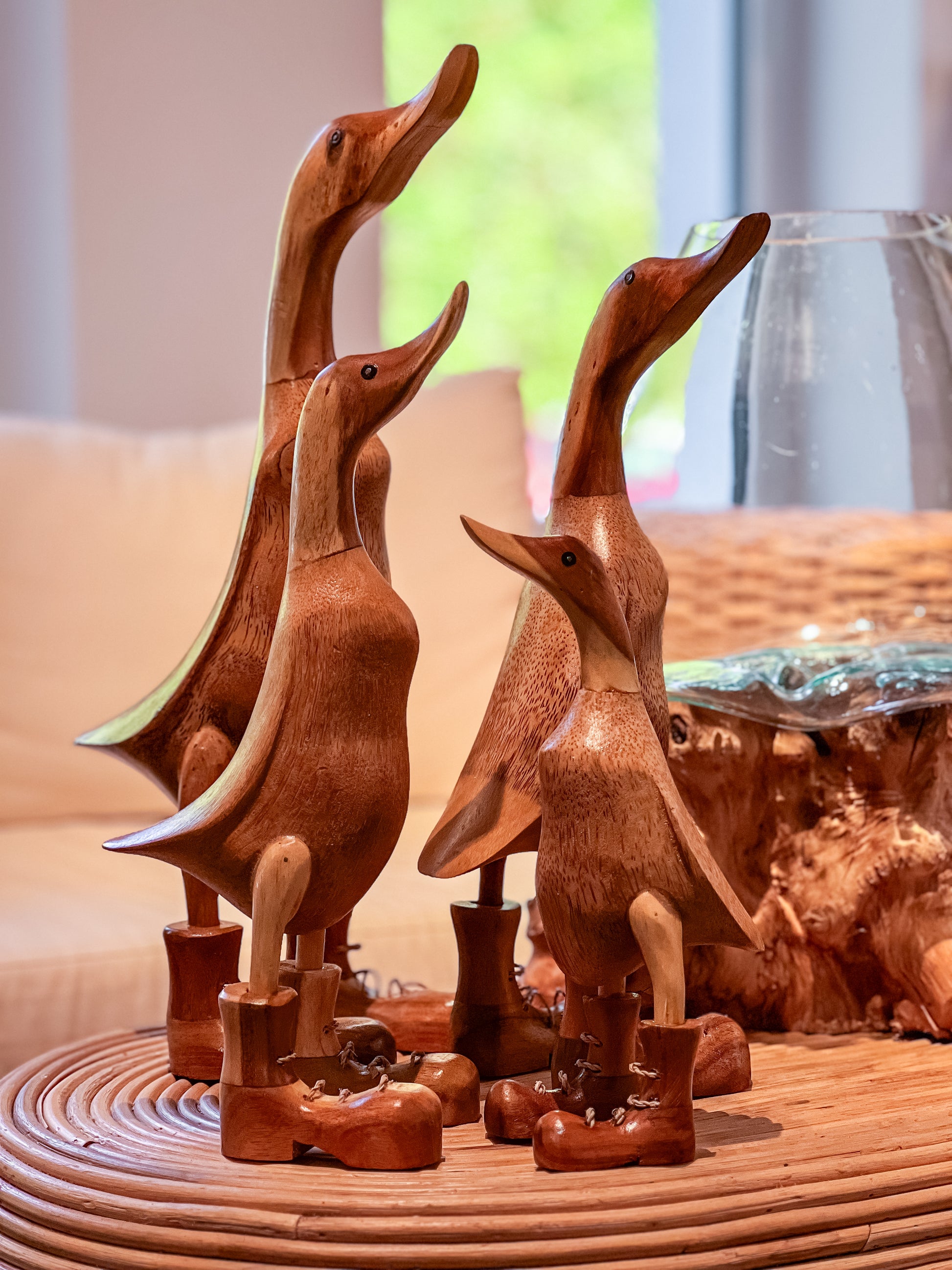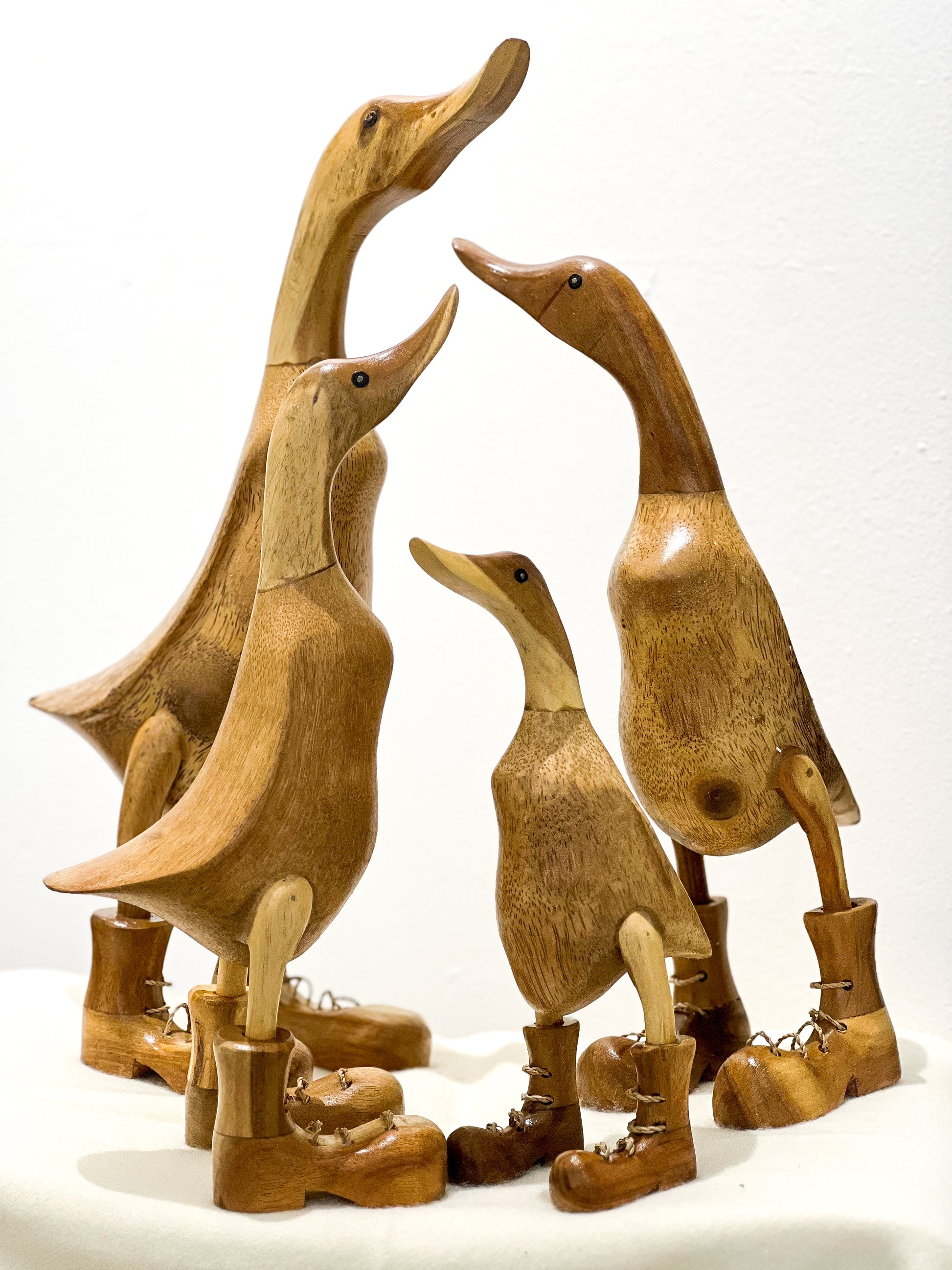 🦎Bringen Sie einen Hauch von Eleganz in Ihr Zuhause mit dieser schönen Holzentenfamilie aus Indonesien.