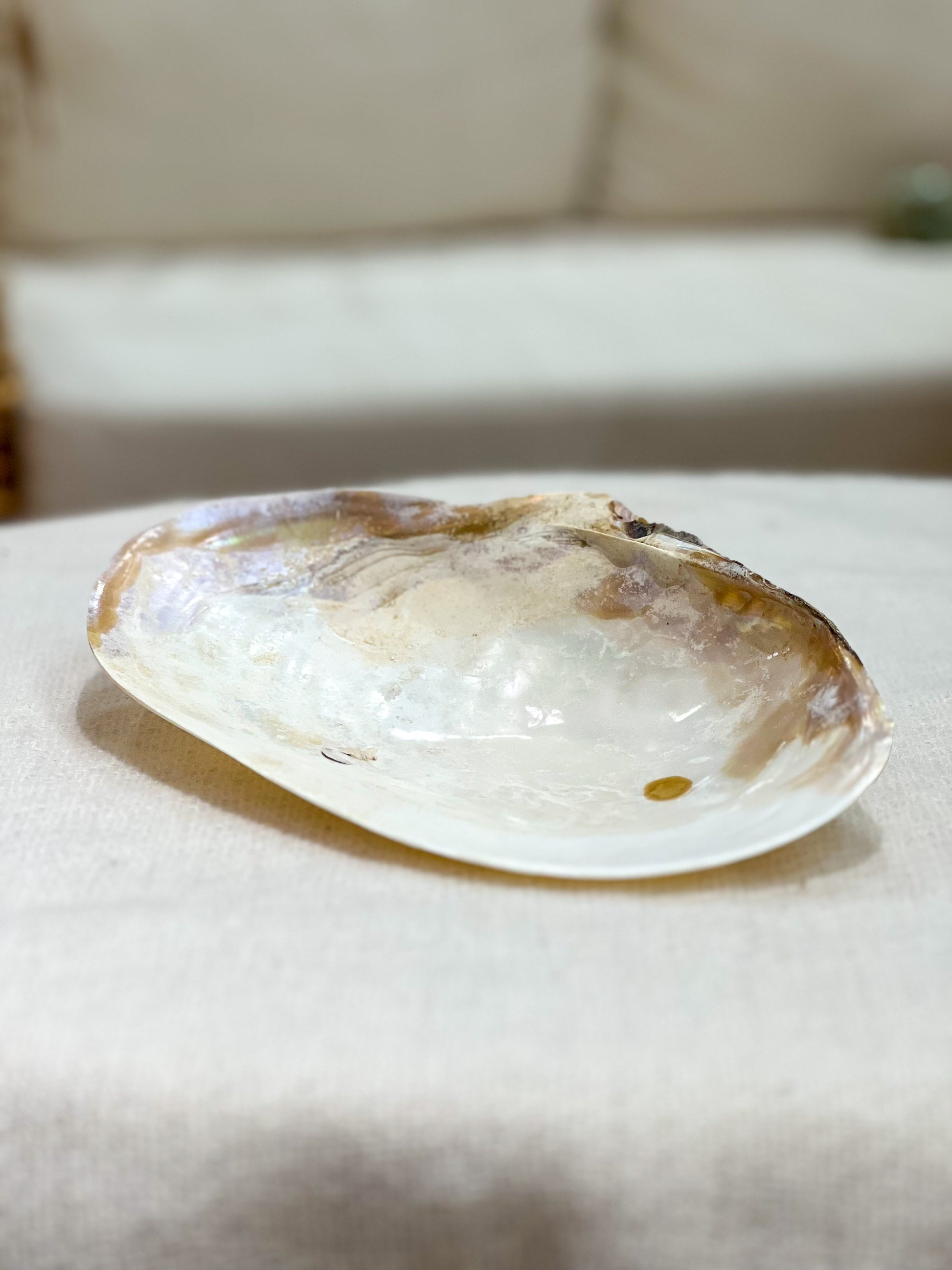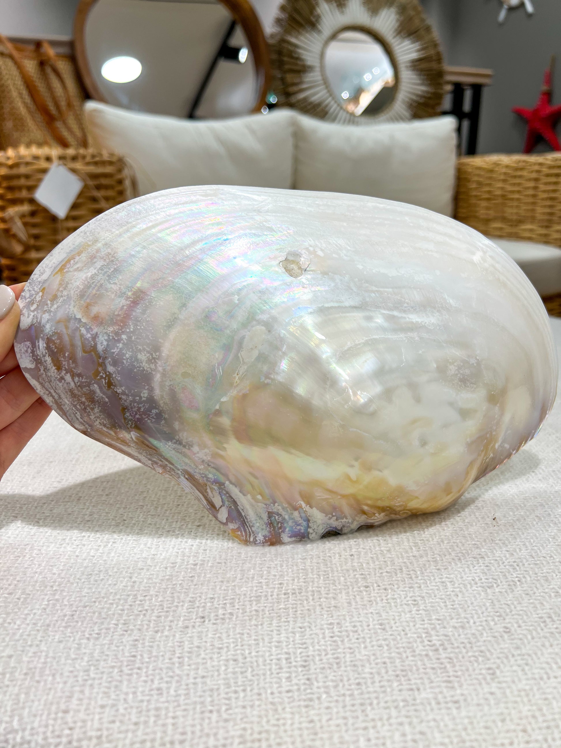 🐚 Die Farbpalette reicht von sanften Grautönen bis hin zu schimmernden Perlmutt-Nuancen, die der Muschel eine edle und exotische Ausstrahlung verleihen.