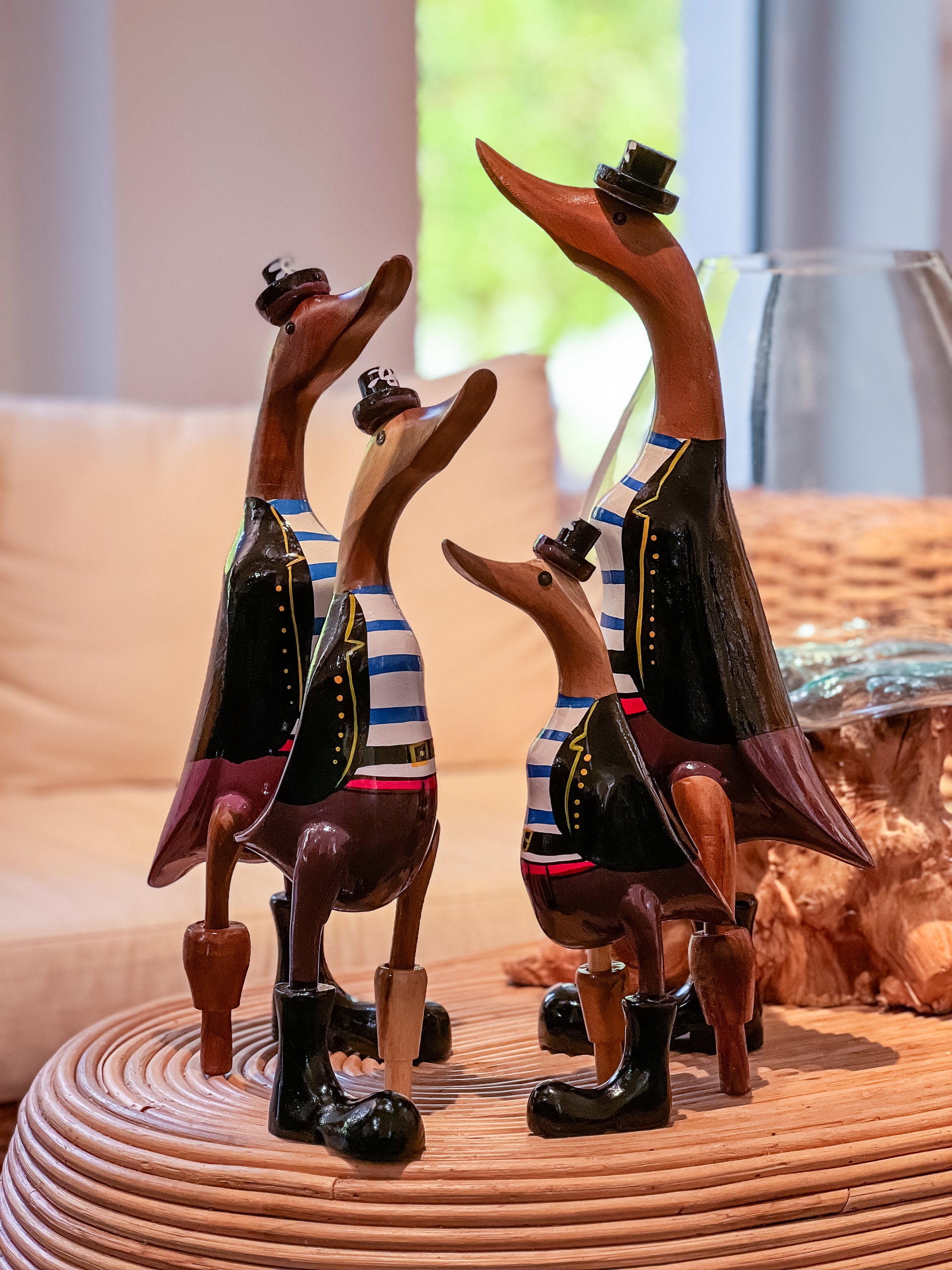 🦎Bringen Sie einen Hauch von Eleganz in Ihr Zuhause mit dieser schönen Holzentenfamilie aus Indonesien.