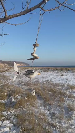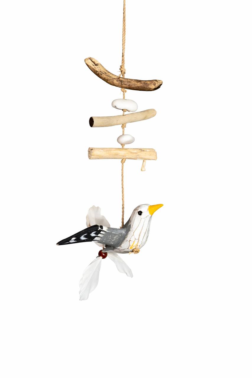 Windspiel aus Treibholz (Weiẞe und graue Möwe)